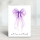 Carte de remerciement pliée élégante pour arrosoir de mariage avec un noeud coquet aquarelle violet et "avec amour et remerciements" dans un script chic. À l'intérieur, personnalisez votre message de remerciement en lettres simples et ajoutez votre nom dans un script ressemblant à une signature, ou laissez vide pour des notes manuscrites.