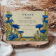 Un design mariage d'inspiration Art Nouveau raffiné avec de superbes fleurs de maïs bleues encadrées de détails botaniques dorés. L'élégance vintage associée à des touches florales audacieuses crée un look intemporel mais artistique, parfait pour les couples à la recherche d'un style mariage sophistiqué et romantique.