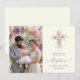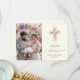 Artistic Lilac Floral Christian Cross Baptism Thank You Photo Card Design,