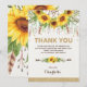 Belle carte de remerciement inspirée de boho avec des tournesols aquarelle rustiques, des plumes et des feuilles vertes attachées à un attrape-rêves