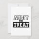 Une carte comptable éffrayante et amusante avec l'expression "Audit ou traitement". Idéal pour les CPA, auditeurs, libraires ou pros financiers qui aiment Halloween. Grand comme un cadeau de bâillon pour les collègues, les fêtes de bureau ou les étudiants en comptabilité pendant la saison éffrayante. Un mélange d'humour d'audit et d'esprit d'Halloween.
