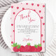 Remerciez vos amis et votre famille d'avoir assisté à votre baby shower avec cette carte de remerciement au thème des fraises.