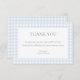 Célébrez la baby shower de votre bébé garçon et les remerciements après l'événement avec notre adorable carte de remerciement simple au motif gingham bleu clair.