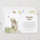 Ce "mignon petit Baby shower à l'aquarelle d'ours" présente un doux petit ours qui renifle l'air en regardant un papillon, et une chouette charmante qui regarde d'en haut. Une petite souris est assise à l'avant. Le texte "Merci" est magnifiquement rendu en aquarelle et placé contre un cercle blanc avec des ballons colorés qui regardent de derrière. L'arrière présente une délicieuse aquarelle avec une charrette en bois avec des fleurs, une minuscule souris cachée dans l'herbe, et un arbre magique avec une fenêtre et une porte dans l'arrière - plan. Customisez le message de remerciement pour convenir à votre style. Magasinez maintenant pour trouver des designs plus charmants ! ©Susanne Sachers - Sunny Mind Design 🌞
