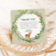 Joli carte de remerciements à thème de bois aquarelle avec un joli faon et hérisson sur une couronne verdoyante et un arrière - plan vert sauge clair.