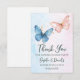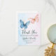 Fête de la révélation de genre bleu ou rose. Baby shower. Ce joli baby shower de révélation de genre Merci cartes design dispose d'un papillon aquarelle.