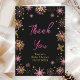 Ce carte de remerciements de baby shower élégant et glamour présente des flocons de neige couleur rose et or en faux parties scintillant et des étincelles sur un arrière - plan noir. Le texte combine écriture manuscrite et polices sans serif modernes pour un look élégant et sophistiqué. C'est parfait pour un baby shower d'hiver ou de Noël. Graphiques par www.etsy.com/uk/shop/SunflowerDayLove