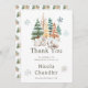 Carte de remerciements de baby shower rustique avec lapins lapins mignons, arbres et flocons de neige. Parfait pour un baby shower d'hiver. Les mots peuvent être changés en fonction de vos propres détails ou exigences