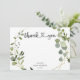 Baby shower carte de remerciements présente des feuilles d'eucalyptus verdoyants sur un cadre géométrique moderne et de calligraphie script avec coeur.