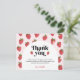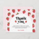 Cartes de Baby shower "Merci" aux fraises, conçues avec une fraise et marguerites motif dans les tons rose et rouge. Ornées de fraises blanches et de typographie rétro, ces cartes adorables sont le choix idéal pour exprimer votre gratitude dans le style et correspondre à votre baby shower sucré de baies. Customisez vos cartes en ajoutant votre nom et un message personnel à l'aide de l'option "Personnalisez ce modèle". Oeuvre originale d'Ana Garza/Kardz Studio. Si vous avez des questions, contactez-moi par l'intermédiaire du conversation Zazzle.