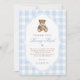 Carte De Remerciements Baby Shower Ours en peluche élégant à carreaux ble