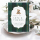 Cette conception de fête prénatale avec un ours en peluche vintage présente une illustration d'ours en peluche peinte à la main encadrée dans une étiquette décorative élégante et posée sur un fond à carreaux vert riche. Inspiré par le style de chambre d'enfant de famille et les célébrations classiques sur le thème du polo, le design semble intemporel, raffiné et soigneusement sélectionné.