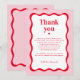 Carte de Remerciement de Baby Shower Rétro Rose et Rouge Moderne Ondulé