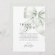 Carte de remerciement Baby Shower Ruban Vert. Ce design élégant présente un doux ruban vert sauge qui symbolise le beau voyage de « nouer le nœud », ajoutant une touche significative à votre célébration, parfait pour une future mariée qui apprécie à la fois la sophistication et la simplicité.