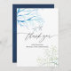 Carte de remerciement de mariage sur le thème de l'océan bleu marine et blanc avec fougères de mer, algues et étoiles de mer, conçue pour être personnalisée rapidement et facilement selon les spécificités de votre événement.