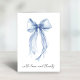 Carte de remerciement pliée élégante pour baby shower de mariage avec une aquarelle bleu clair d'un nœud coquet et "avec amour et remerciements" écrits dans un script chic. À l'intérieur, personnalisez votre message de remerciement et ajoutez votre nom dans un script ressemblant à une signature, ou laissez vide pour des notes manuscrites.