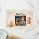Cartes de vœux avec ballons ourson mignon Enfants Photo Anniversaire. Dessin mignon d'un ourson avec des ballons colorés et des nuages sur fond bleu. Ajoutez votre photo, texte et nom.