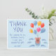 Carte de remerciement Ballons Ourson Mignon Anniversaire Enfants. Dessin mignon d'un ours en peluche avec des ballons colorés et des nuages sur fond bleu. Ajoutez votre texte et votre nom.