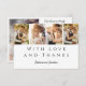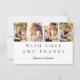 Carte de remerciements Mariage moderne Photo Strip - Une façon chic et distinctive d'express votre gratitude. Ce carte de remerciements mariage comporte une bande de quatre photos sur le devant et une photo sur le dos, totalisant cinq photos. Idéal pour les couples qui souhaitent envoyer un remerciement élégant et sincère à leurs amis et à leur famille d'une manière unique. Le design combine un texte élégant et élégant avec une belle calligraphie de script, créant une atmosphère intemporelle et sophistiquée. Personnalisez ce modèle en ajoutant vos cinq photos et en adaptant le message à votre style.