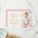 Carte De Remerciements Baptême chrétien de fille Rose Floral Ruban Photo