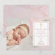 Carte De Remerciements Baptême Christening Fleurs de verdure Marbre rose