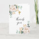 Fond blanc. Floraux blancs, pivoines et végétation d'eucalyptus. Le Merci est écrit avec une grande police de style lettré à la main. A l'intérieur : Une grande photo à l'intérieur et votre remerciement note. Retour : 2ème photo.