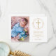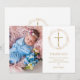 Avec une photo spéciale, une délicate guirlande de fleurs en feuille d'or faux et un crucifix et votre message de remerciement de baptême ou de christening dans une typographie chic. Le revers présente une délicate guirlande de fleurs en feuille d'or faux assortie et un crucifix. Conçu par Thisisnotme