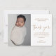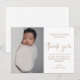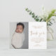 Cette carte de remerciement de baptême de bébé photo moderne comporte un art de remerciement en écriture calligraphiée à la main qui est déplaçable et vous pouvez facilement en changer la couleur, une photo verticale et un texte modifiable. Cliquez sur le bouton modifier pour personnaliser ce design.
