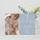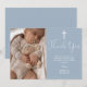 Cette carte de remerciement de baptême à l'écriture élégante bleu poussiéreux peut être personnalisée avec votre photo spéciale et votre message de remerciement dans une écriture chic. Conçu par Thisisnotme©