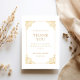 Mariage musulman Gold ThankYou Card à être envoyé après la cérémonie de Nikah ou mariage de la mariée et mariée. Cette carte a un simple arrière - plan de couleur blanche avec une police de script en or écrit sur le devant. La bordure du cadre est ornée d'une décoration vintage dorée en feuilles baroques. Antique. Les noms du couple marié, la date de leur mariage et toutes les informations peuvent être personnalisés par vous avec l'outil de design sur Zazzle. Imprimable. Modifiable. Sa Ligne Pour Design Studio. Contactez le concepteur pour toute modification. Merci.