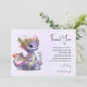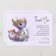 Carte de remerciements avec l'illustration d'un dragon mythique. Pèse-personne violet et bleu. Une couronne d'or fleurie aux cornes orne la tête. Magique, amusant et amical.