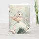 Belle carte de voeux pliante blanche d'oiseau de Noël rose.