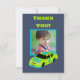 Cette carte de remerciement plate et amusante est prête à être personnalisée avec votre propre photo. Avec son style de carte de stock graphique voiture de course décoré avec le numéro 4 et le slogan BESOIN DE VITESSE c'est parfait pour les fêtes d'anniversaire des garçons de 4 ans. Le verso présente une zone vierge avec des accents de trophée et de drapeau à damier où vous pouvez écrire votre propre message de remerciement.