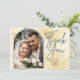 Cette aquarelle au beurre très pâle jaune et bleu doux est un thème romantique et élégant pour vos fournitures de mariage stationnaire et de fête. Les fleurs d'aquarelle jaune et bleu sont douces et élégantes. Ce merci a de l'espace pour vos noms, votre propre message de remerciement et une photo du couple mariage. Cette carte de remerciement fait partie d'une gamme d'accessoires de mariage stationnaire et de fête et le fournisseur coordonnera avec cette invitation à rendre vos préparatifs faciles.