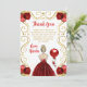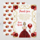 This birthday thank you card features an elegant gold frame, a beautiful princess with blonde hair and a red dress, flowers and a balloon. This is perfect for a birthday party
