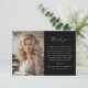 Express your gratitude with a Black Photo Message Funeral Thank You Card designed with elegance and compassion. Featuring a cherished photo and a heartfelt message, this card uses a clean black-and-white layout to convey respect and sincerity. The minimalist design creates a timeless, dignified look, allowing your words of thanks to take center stage. Perfect for acknowledging the love, support, and kindness received during a difficult time, this card offers a meaningful way to share appreciation and remembrance.