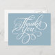 Cartes postales "Merci" de script manuscrit fantaisie en bleu Aquamarine. Parfait pour les Mariages, Anniversaires, Noël, Douches ou toute autre occasion. Cartes postales "Merci" couleur bleu Aquamarine, si nécessaire, choisissez une autre couleur ou ajoutez votre propre texte imprimé, adresse ou nom de société dans l'onglet "Customiser".