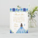 Ce carte de remerciements de sweet sixteen élégant et glamour présente une belle princesse aux cheveux brunes et à la peau claire dans une robe bleue. Le texte combine écriture manuscrite et polices sans serif modernes pour un look élégant et sophistiqué. Les compositions florales, les papillons et les confettis d'or créent un mélange parfait de rustique et de chic. Graphiques par www.etsy.com/uk/shop/SunflowerDayLove