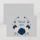 Carte De Remerciements bleu marine et fleurs blanches gris feuille couron