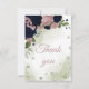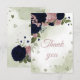 Carte De Remerciements bleu marine et fleurs roses verdure botanique