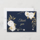 fleurs blanches romantiques et or feuille botanique carte de remerciements bleu marine