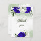 fleurs romantiques bleu royal et blanc avec quelques feuilles vertes carte de remerciement botanique.