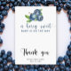 Carte d'invitation baby shower mignonne avec aquarelle illustrant les bleuets. Le texte dit "un bébé doux aux baies est en route." Éléments correspondants disponibles.