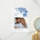 Blue watercolor fine art flowers on a custom photo with a left aligned thank you text.