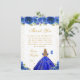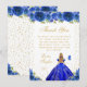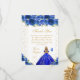 Ce carte de remerciements de sweet sixteen élégant et séduisant présente une belle princesse aux cheveux blonds et à la peau claire dans une robe de bal bleu royal. Le texte combine écriture manuscrite et polices sans serif modernes pour un look élégant et sophistiqué. Les compositions florales, les papillons et les confettis d'or créent un mélange parfait de rustique et de chic. Graphiques par www.etsy.com/uk/shop/SunflowerDayLove