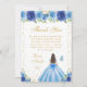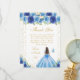 Carte De Remerciements Blue Floral Brunette Hair Princess Sweet Sixteen