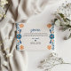 This Blue Orange Floral Elegant Fiesta Spanish Wedding Thank You Card design features an intricate floral pattern that wraps around the border, showcasing delicate blue and orange flowers interwoven with curling vines and leaves. The color palette, consisting mainly of soft blues with touches of warm orange, creates a harmonious contrast, evoking a hand-painted, artisanal quality. The symmetry of the design along with the detailed floral motifs adds a traditional, handcrafted charm, reminiscent of Mexican folk art.