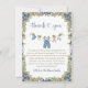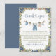 Bienvenue à votre petit prince en style avec notre carte de remerciements baby shower sucré aux bleuets. Avec des bleuets d'aquarelle, de la verdure et des vêtements de bébé sur une ligne de vêtements, ce design mignon donne le ton pour un baby shower d'inspiration estivale.