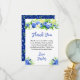 This beautiful and elegant thank you card features watercolor blueberries, daisies and foliage. The text combines handwritten script and serif fonts for a stylish and modern look. This is perfect for a spring or summer rustic birthday party.