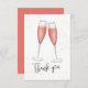 Ce design présente une carte de remerciement pour une fête de fiançailles, avec une teinte rose blush, avec un thème de mariage, un script, avec une esthétique moderne élégante, une aquarelle, une illustration de champagne avec une typographie calligraphique, avec un thème de brunch et de bulles.